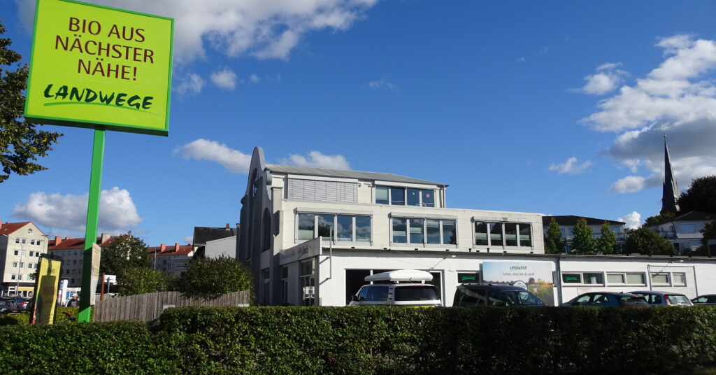 Wobei, wer im Biomarkt bei der Landwege-Zentrale in der Lübecker Ziegelstraße einkaufen geht, kann direkt vergleichen. Gleich nebenan gibt es einen großen Rewe-Markt und auch den zum Konzern gehörenden Discounter Penny. Der Unterschied ist augenfällig: bei Landwege ein breites Angebot an Gemüse und Obst, alles bestens gepflegt und unverpackt. Nebenan dann eine deutlich dürftigere Auswahl. Und wer hier einkauft, kann dann einen guten Teil dessen, was er nachhause getragen hat, gleich in der Gelben Tonne entsorgen.