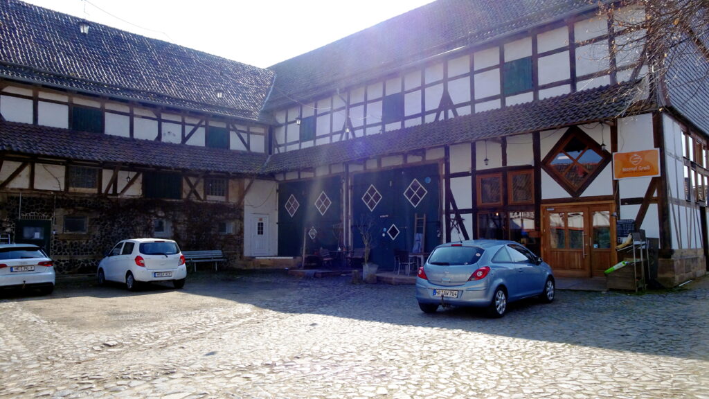 Alle Gebäude um den Hofplatz sind gut erhaltene Fachwerkbauten, die in den letzten Jahrzehnten immer wieder neuen Nutzungen zugeführt und dabei restauriert wurden. Ein Bilderbuch-Bauernhof an der Deutschen Fachwerkstraße, der heute aber nur so dasteht, weil er in den letzten Jahrzehnten ständig erneuert wurde – und das nicht nur äußerlich.